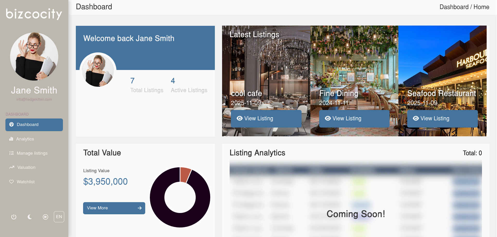 Welcome to the new Bizcocity. The platform has been completely rebuilt from the ground up, featuring a full redesign and an all new dashboard with an overall improved UI and UX. We are introducing a whole suite of new features including our new search algorithm and messaging platform. We have also expanded to include both the United States and all E.U countries on our platform. Another thing we improved are the subtle changes to our logo marking the start of a new era.